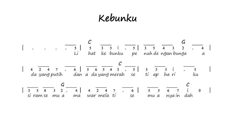 - Tuliskan penyebutan not angka yang benar pada lagu “Kebunku” di bawah ini!